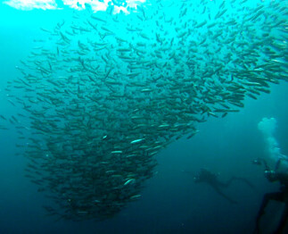 There were seven sightings of sailfish during our time at sea. We saw two underwater on a baitball, and on two occasions we watched from the boat as they fed on the surface. The other three records were of sailfish jumping out of the wake of moving SCUBA boats.
